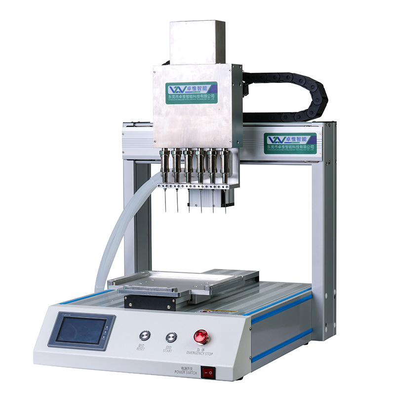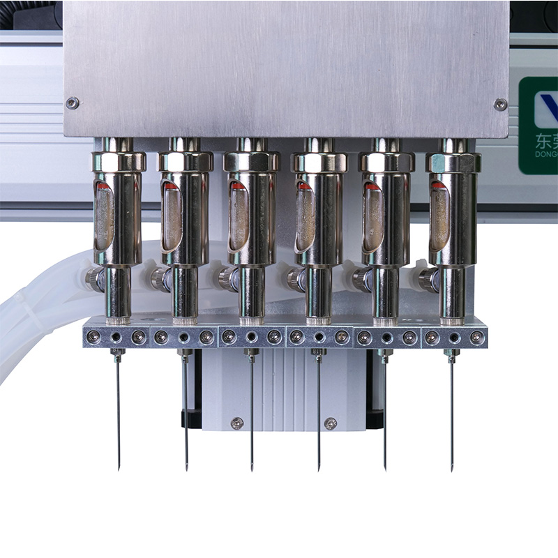 高精度自動注油機(單軸六頭)純電動控制注液工作,不需要氣泵;操作簡 單、體積?。痪哂懈呔?、高效率、穩定性強等特點。